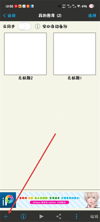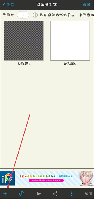 2、在我的图库页面,点击左下角的+号。