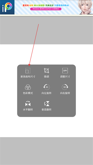 3、点击更改画布的尺寸选项,进入画布尺寸调整界面。