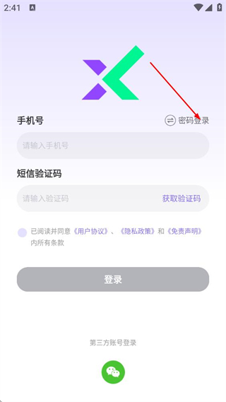 1、阅读用户协议、隐私政策后,点击同意并继续,进入迅流云登录页面。