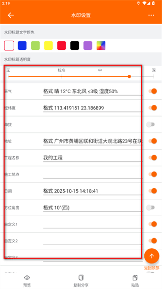3、继续下滑页面,按需修改天气、经纬度、地址等水印具体显示内容。