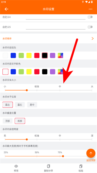4、根据需求调整水印字体大小、水平及垂直位置、透明度等参数,完成后即可应用修改后的水印信息。