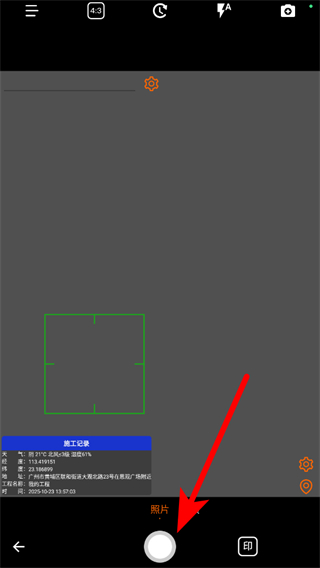 1.打开工程相机应用,点击右下角的相机按钮进入拍摄界面。