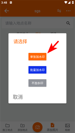 3.工程施工拍照,做施工记号、加水印:记录经纬度,地理位置,天气,工程,时间等信息;