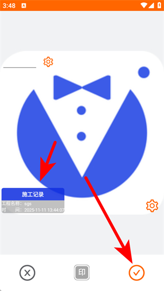 5、照片添加水印后,点击对勾按钮,完成工程照片的水印添加操作。