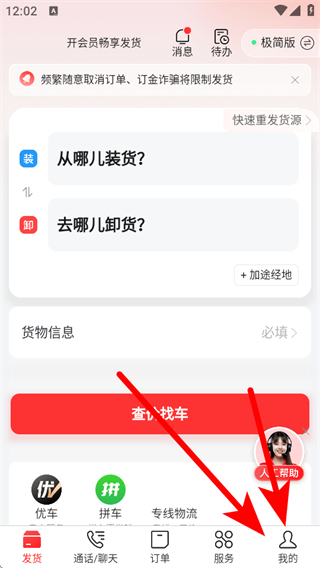 1、打开运满满货主APP,点击右下角我的,进入个人页面。
