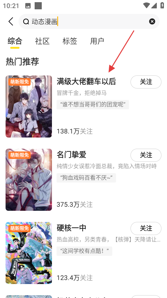 3、在搜索结果中,可选择感兴趣的动态漫画作品查看。