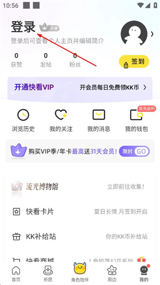 3、在个人中心页面,点击登录选项,进入登录/注册的操作界面。