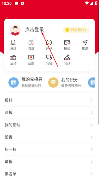 2、在个人功能菜单中,点击点击登录区域,可进入立即登录页面。