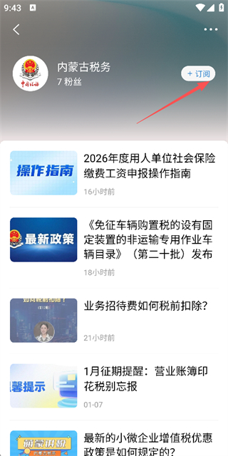 3、在内蒙古税务账号详情页面点击右上角的订阅按钮,完成该账号的订阅操作。