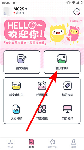 1、打开印先森,在主界面找到并点击图片打印,进入图片打印功能页面。