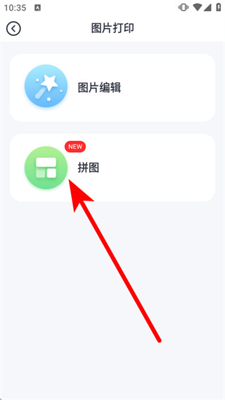 2、在图片打印页面中,选择拼图功能,进入照片选择界面。
