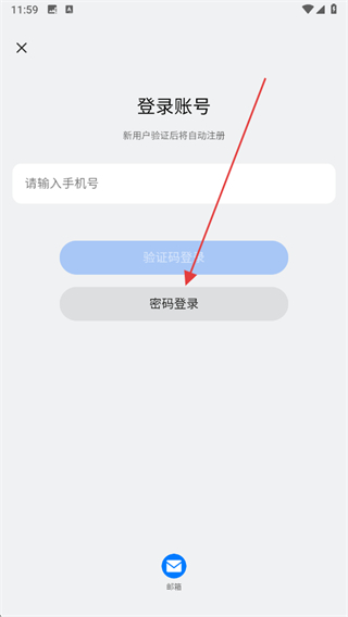 3、在登录页面中选择密码登录选项,切换到密码登录界面。