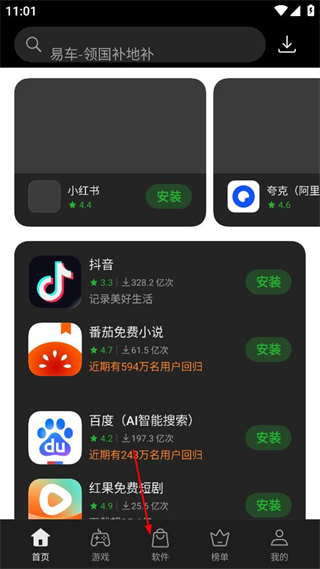 2、选择界面下方的软件选项,进入软件分类页面,查看展示的各类软件列表。