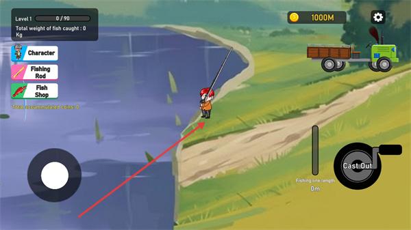 1、在钓鱼界面点击CastOut按钮,将鱼钩抛入水中,开始钓鱼流程。