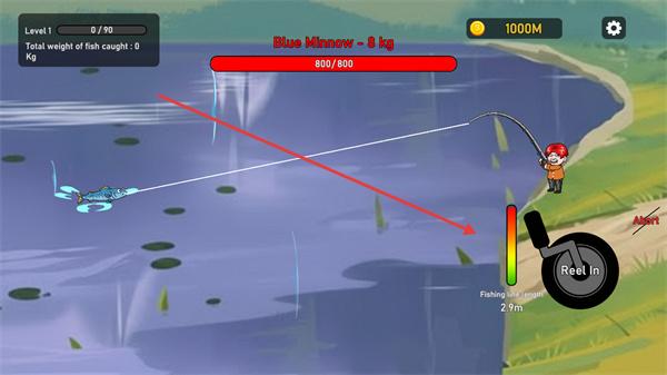 2、当鱼上钩后,点击ReelIn按钮收线,逐步拉近与鱼的距离,注意观察鱼的状态。
