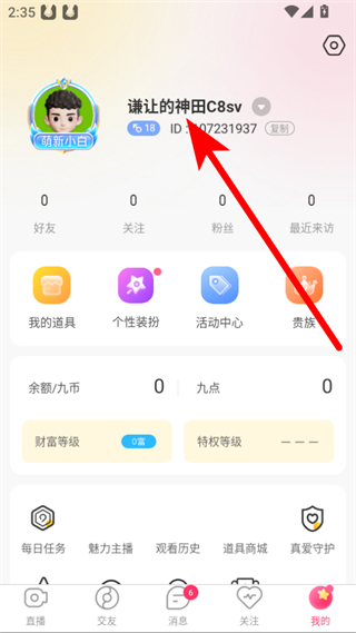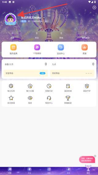 1、打开九秀直播App,点击底部导航栏的我的选项,进入个人页面。