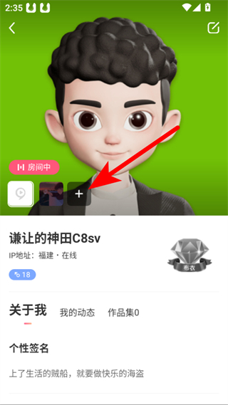 3、在个人主页中,点击头像下方的加号按钮,弹出头像选择菜单。