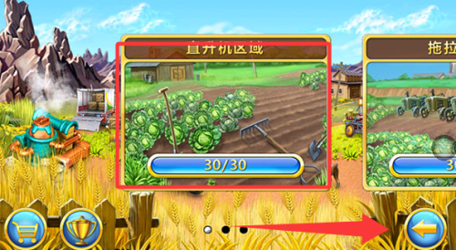 2、查看直升机区域的卷心菜种植进度,确认进度条完成后推进至游戏关卡。