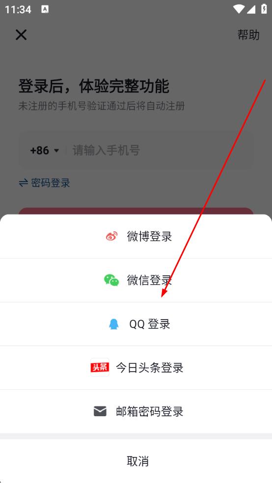 2、在个人页面,若未登录,会触发登录弹窗,选择QQ登录、也可选其他方式,跳转至对应登录授权页。