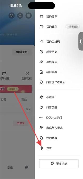 3、在功能菜单中点击设置,进入设置页面。