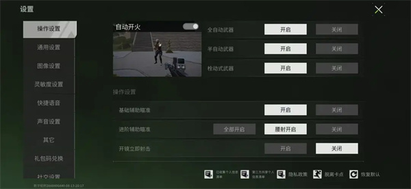 一键开镜设置是开火时自动开镜,减少玩家先开镜后开火的操作,多指玩家使用这一设置配合手速可以做到在战局内操作灵活流畅,射击快速精准。如果你不习惯射击时自动开镜,就关掉这一选项。