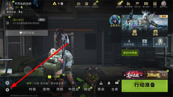 2、在游戏主界面,点击左下角的设置按钮,进入设置相关的功能界面。