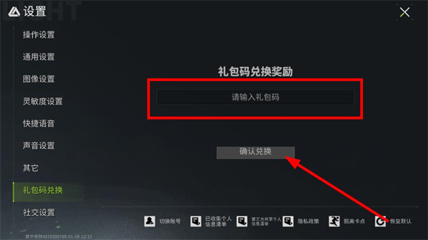 3、在设置界面左侧选项中,找到礼包码兑换选项,点击进入礼包码兑换页面。