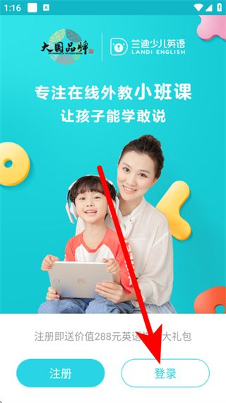 1、在兰迪少儿英语的启动页面,点击登录按钮,进入登录页面。