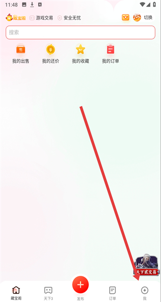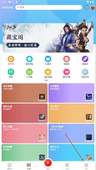 1、在进入到藏宝阁首页中,可以点击下方我按钮,进入我的主页。