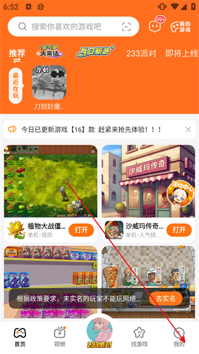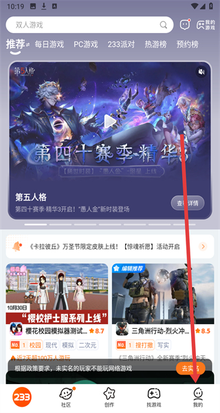 1、打开233乐园,点击底部导航栏的我的选项。