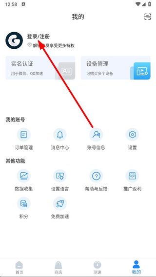 2、在个人页面,点击登录注册选项,进入GoLink的登录信息填写界面。