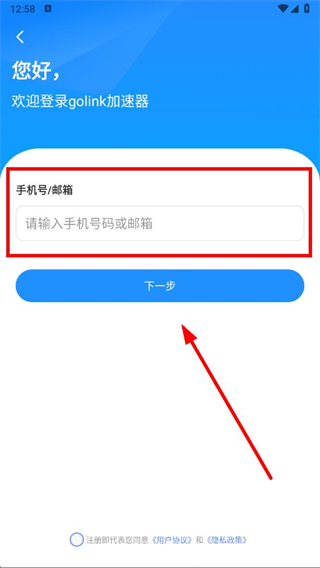 3、在登录界面的手机号邮箱输入框中,填写对应的账号信息,点击下一步。