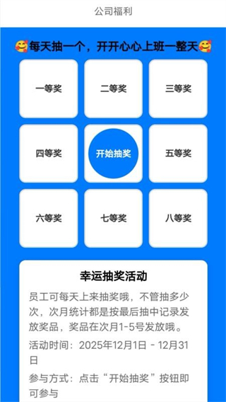 定期更新多样公司福利活动,幸运抽奖形式简单易参与,中奖后可便捷领取专属奖品,丰富员工办公生活,增强团队凝聚力与员工归属感,提升整体工作积极性。