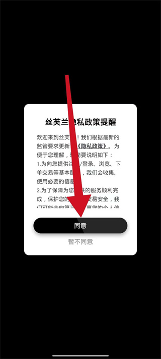 1、打开丝芙兰,弹出弹窗后,点击同意,进入首页。