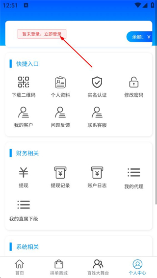 2、在个人中心页面,点击暂未登录,立即登录选项,进入登录页面。