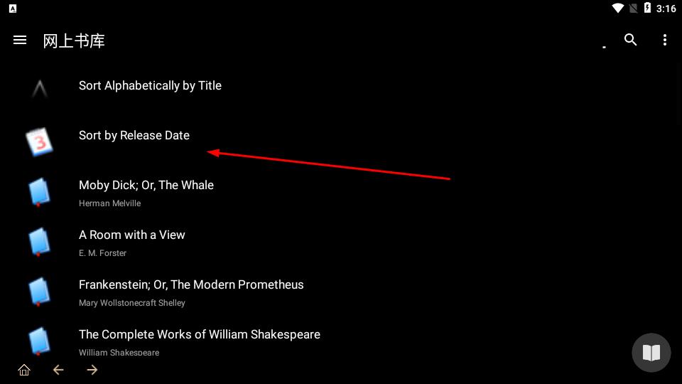 1、进入网上书库界面,点击Sort by Release Date选项,按书籍发布日期排序列表,便捷筛选目标书籍。