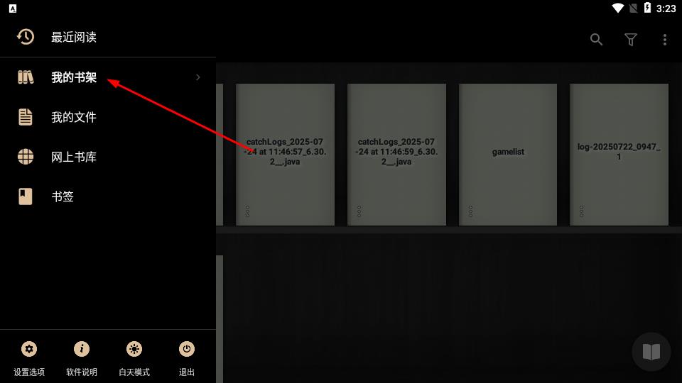 2、点击左侧菜单栏我的书架,查看已存储的书籍文件,管理本地阅读资源,快速定位阅读内容。