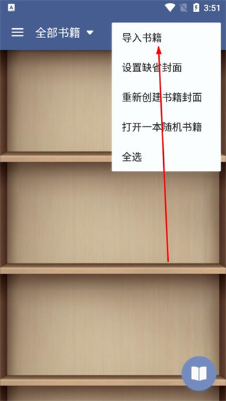 4、在操作选项中选择导入书籍,弹出导入路径选择窗口。