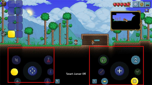 2、在游戏中通过左侧方向键移动角色,右侧按键使用工具收集资源。