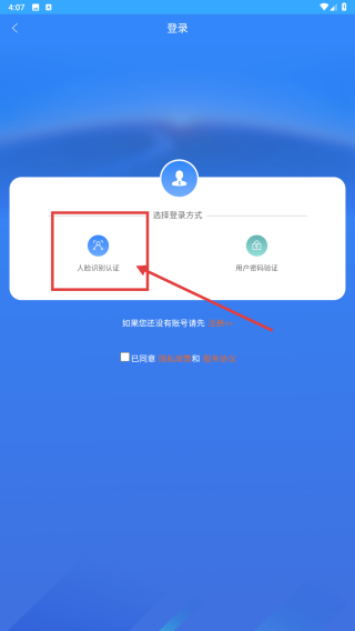 4、如需登录,进入登录页面,可选择人脸识别认证等方式进行账号登录,以便使用更多服务功能。