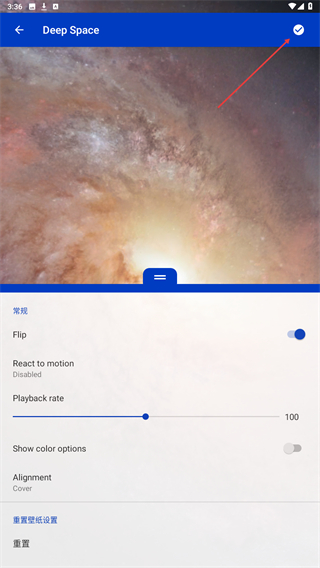 4、在壁纸详情页,点击右上角勾选按钮,将该壁纸设置为设备壁纸。
