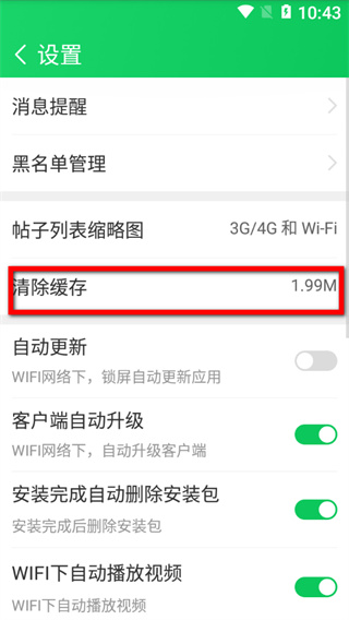 3、在设置界面,点击清除缓存选项,进入缓存清除确认页面。