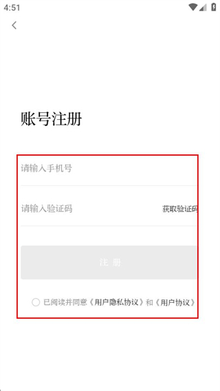 4、在账号注册页面填写信息并勾选协议后,点击注册按钮即可完成账号注册。
