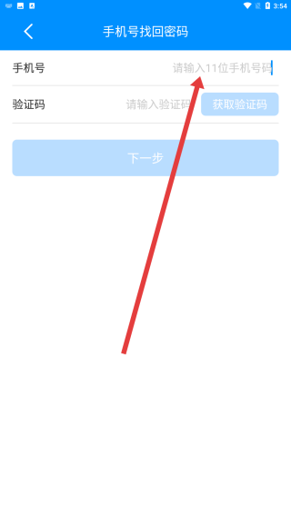 3、可以在输入框中输入手机号码后获取验证码,完成找回密码的操作。