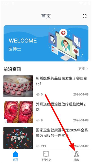 1、打开医博士APP,点击底部导航栏的我的。