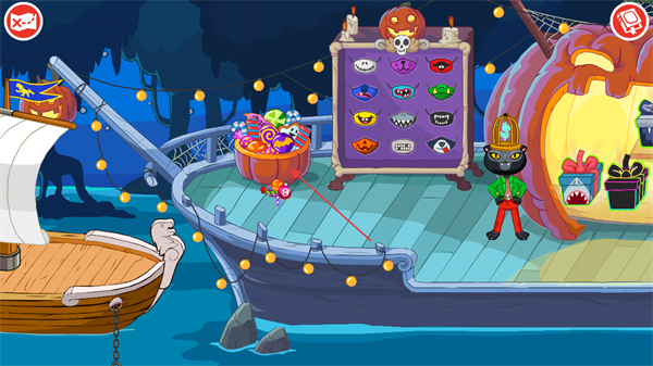 4、驾驶船只在海上航行,探索不同的场景区域,与场景中的元素互动,开启佩皮奇迹世界的冒险之旅。