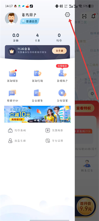1、打开首汽约车APP,点击个人图标,弹出菜单。