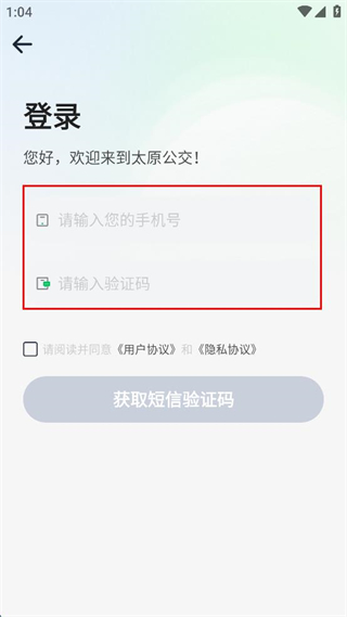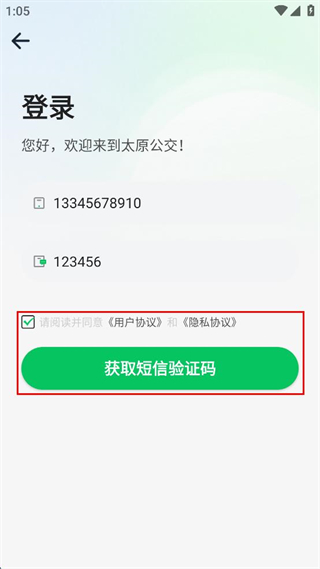 4、勾选请阅读并同意用户协议和隐私协议,点击获取短信验证码。
