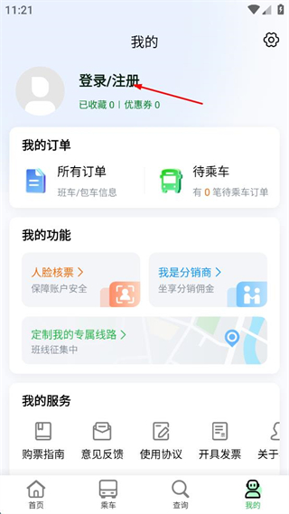 2、点击登录/注册,进入登录页面。