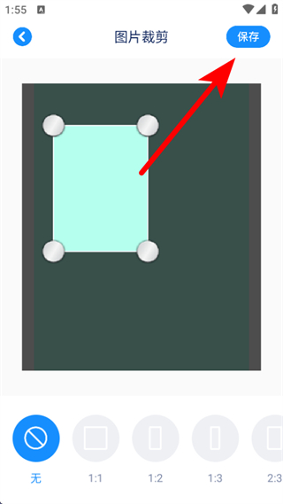 4、在图片裁剪界面调整裁剪区域,完成后点击右上角保存。